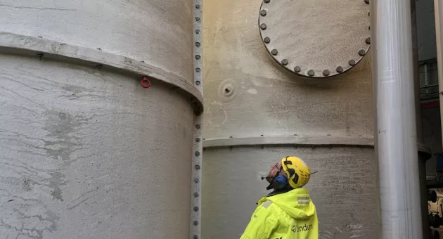 For biogassanlegget betyr tankene også et løft i energieffektivitet. Vi varmer opp substratet med spillvarme (overskuddsvarme) fra hovedprosessen. Dette blir ganske teknisk, men enkelt forklart handler det om å bruke varmen vi allerede har i anlegget, på en smartere måte. I stedet for at overskuddsvarme går til spille, bruker vi den nå til å forvarme substratet i de nye tankene. Det betyr at materialet kommer inn i prosessen med en høyere temperatur, slik at vi trenger mindre energi for å varme det videre opp. Alt i alt gjør de to nye substrattankene at vi kan jobbe mer forutsigbart, mer energieffektivt og med mindre risiko – til beste for hele anlegget.